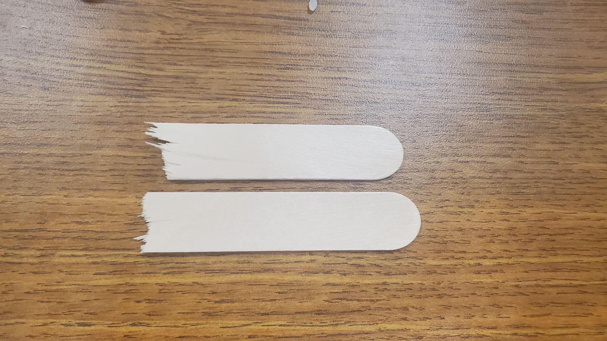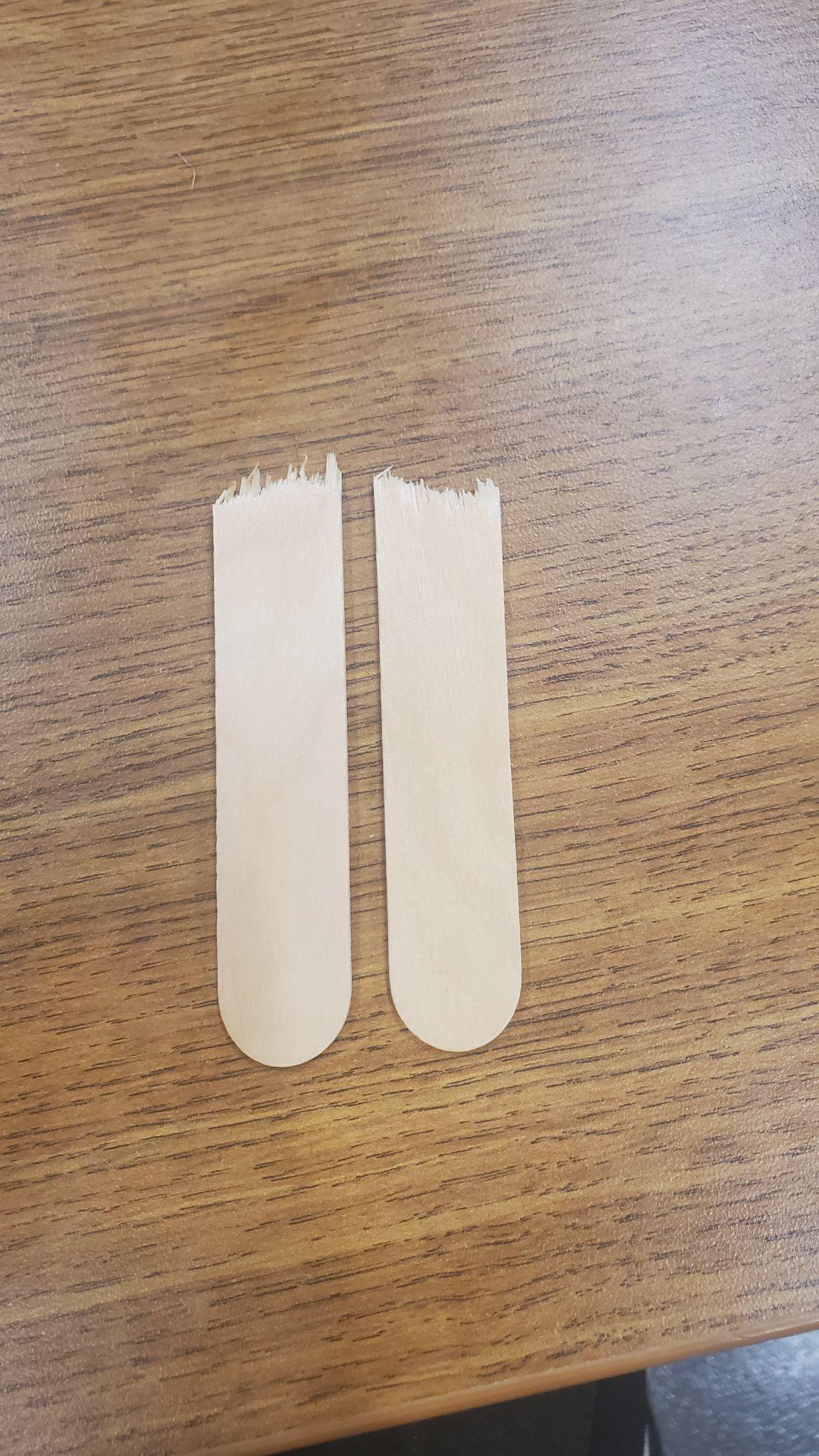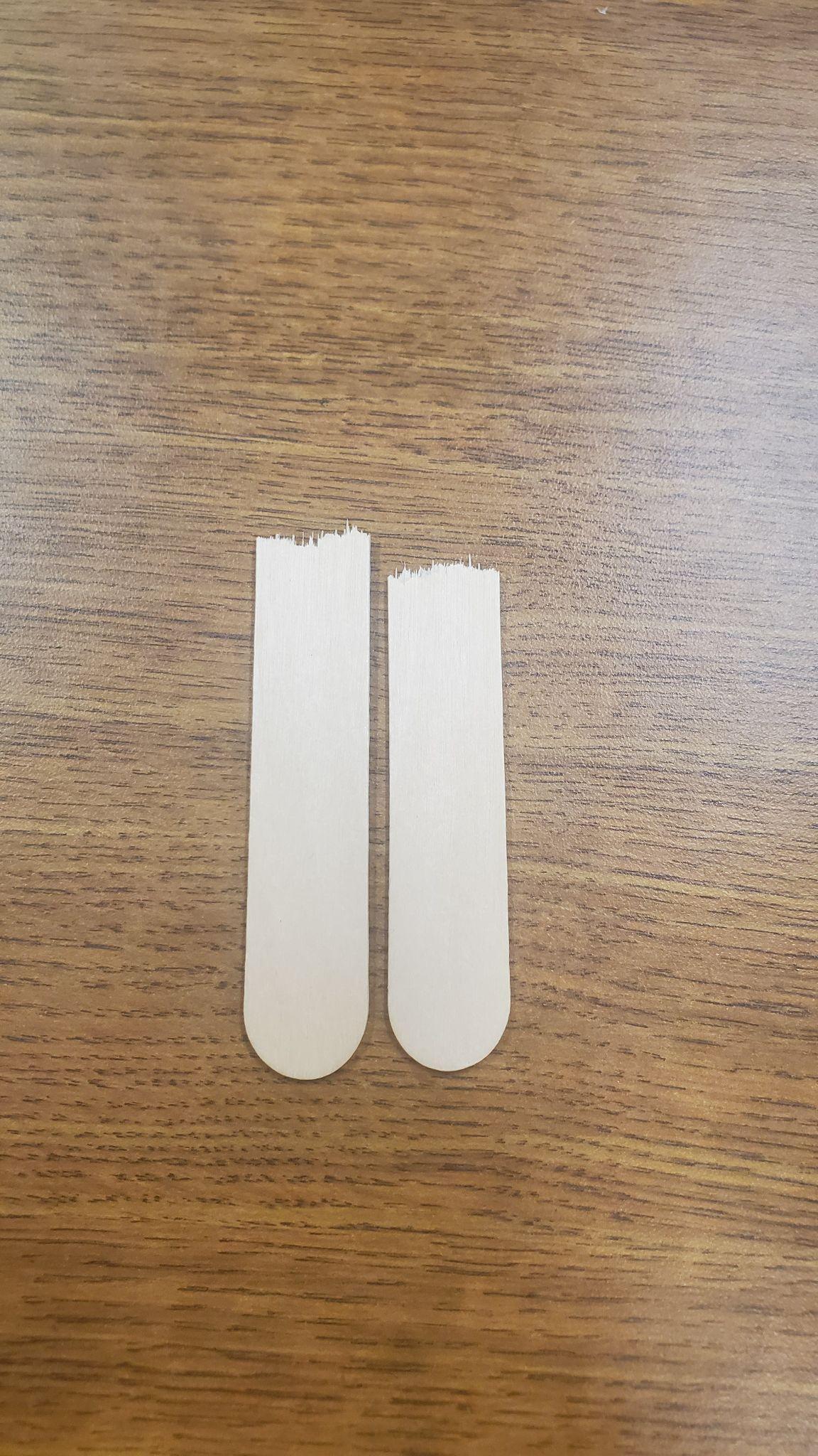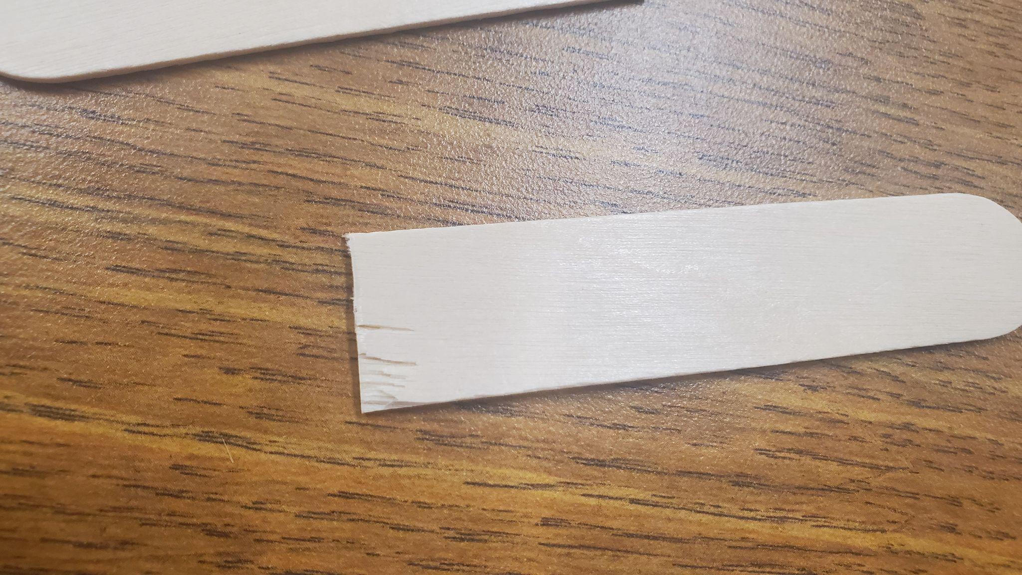 Take one of the large popsicle sticks and snap it in half. Try and be as precise as possible (with every step).