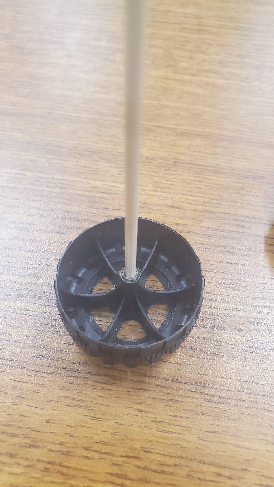 Once everything is in place and positioned evenly / centered. Add a bit of hot glue to the 3d printed wheel and the skewer to attach them properly. Only add a little bit in case you end up needing to take this part off to replace the elastic in the future.. THE CAR IS DONE!!!!! Feel free to test it with the RF Transmitter circuit board like was done to test the connections earlier in the step-by-step. NOW on to part 2: the controller.