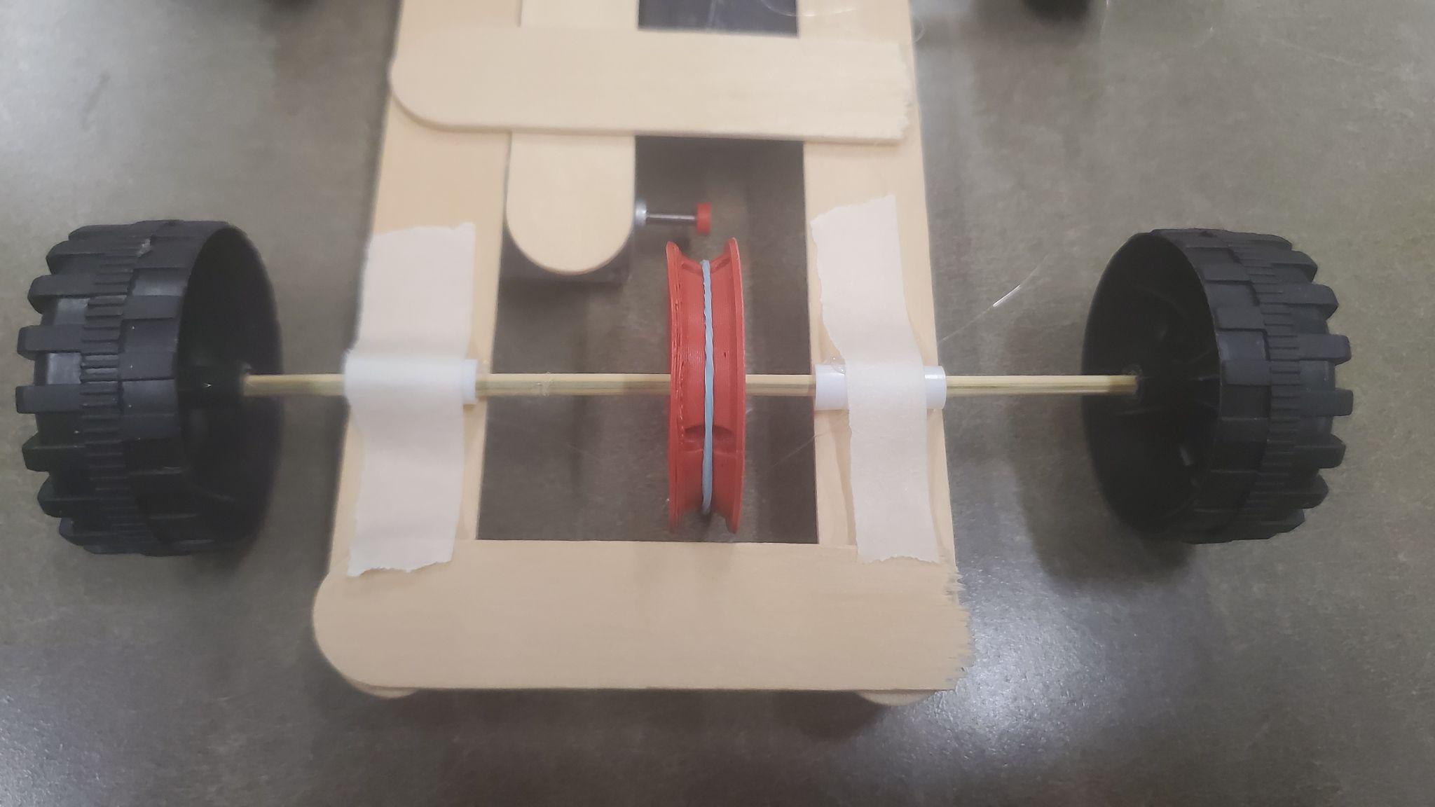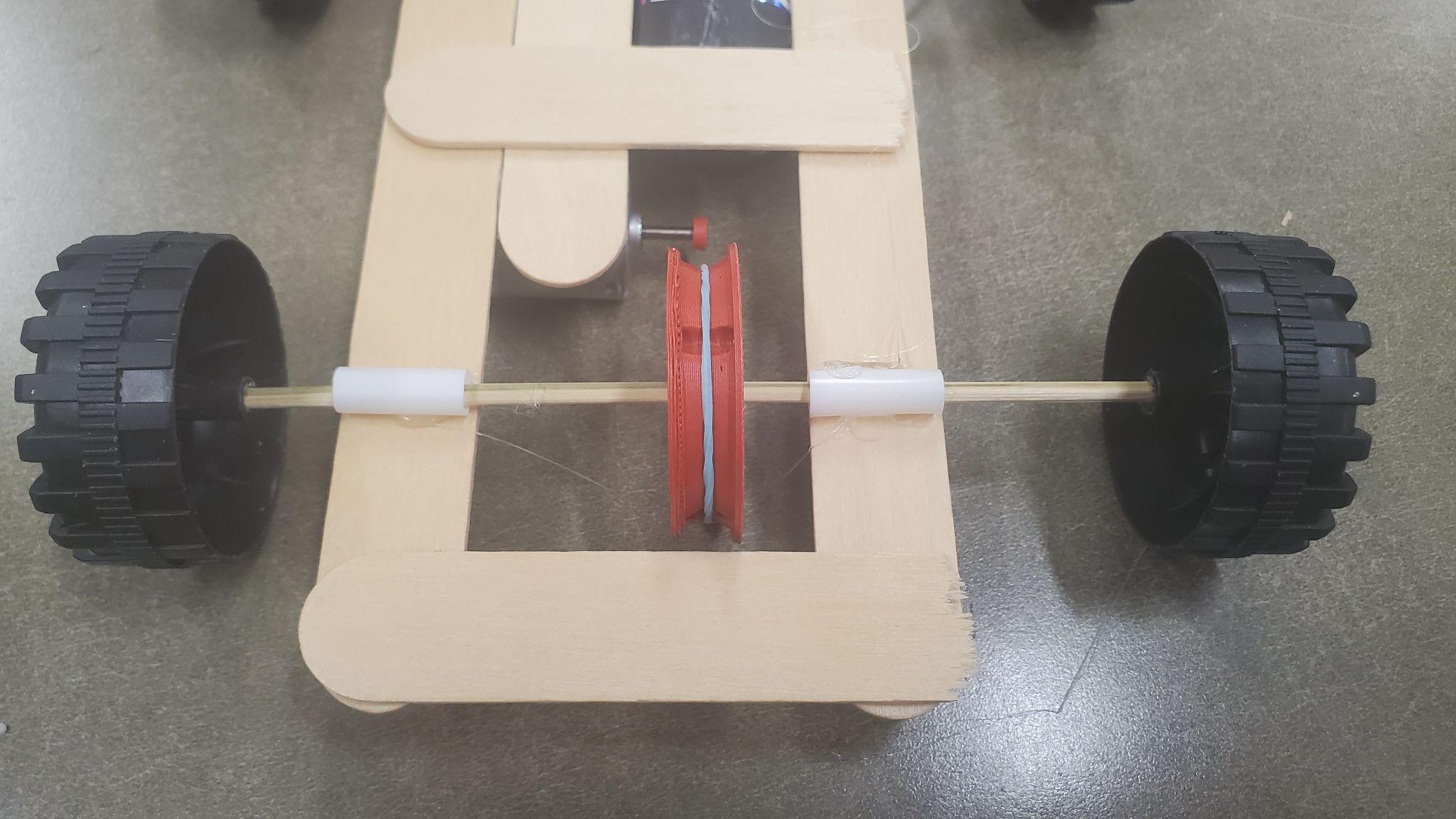 The final design was the result of 6 major iterations, refining chassis stability and axle friction to ensure a reliable build that could be completed by students within the camp timeframe.