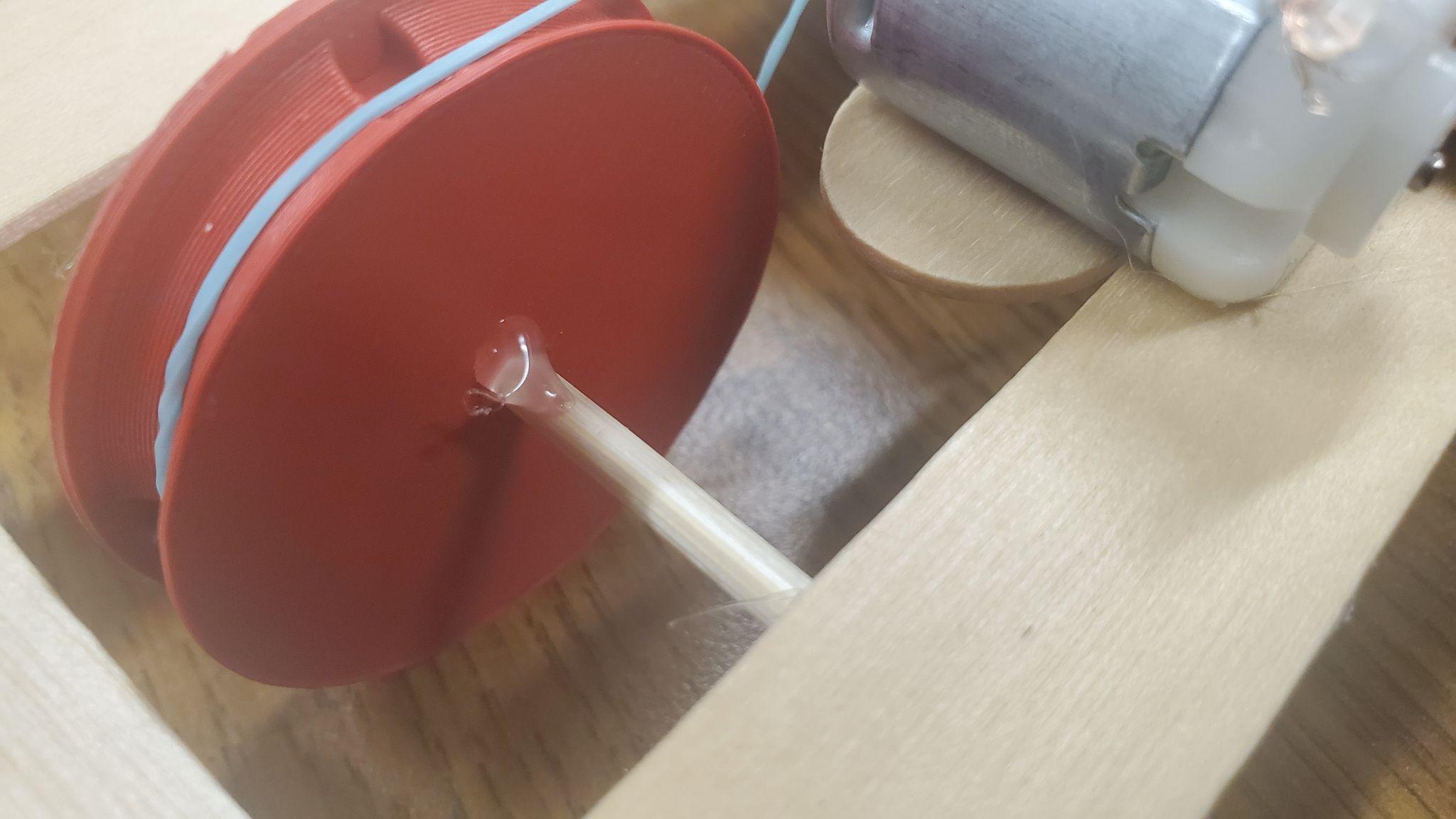 Place the small 3d printed wheel on the end of the shaft of the dc motor. Hot glue the end if it seems like it keeps falling off.