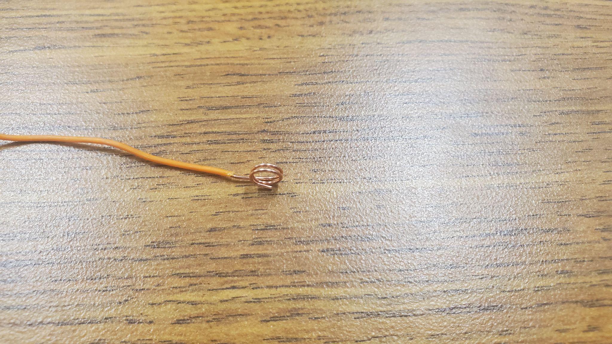 Take it off the skewer and press the circles together so it forms a coil. This will be the antenna for the controller.