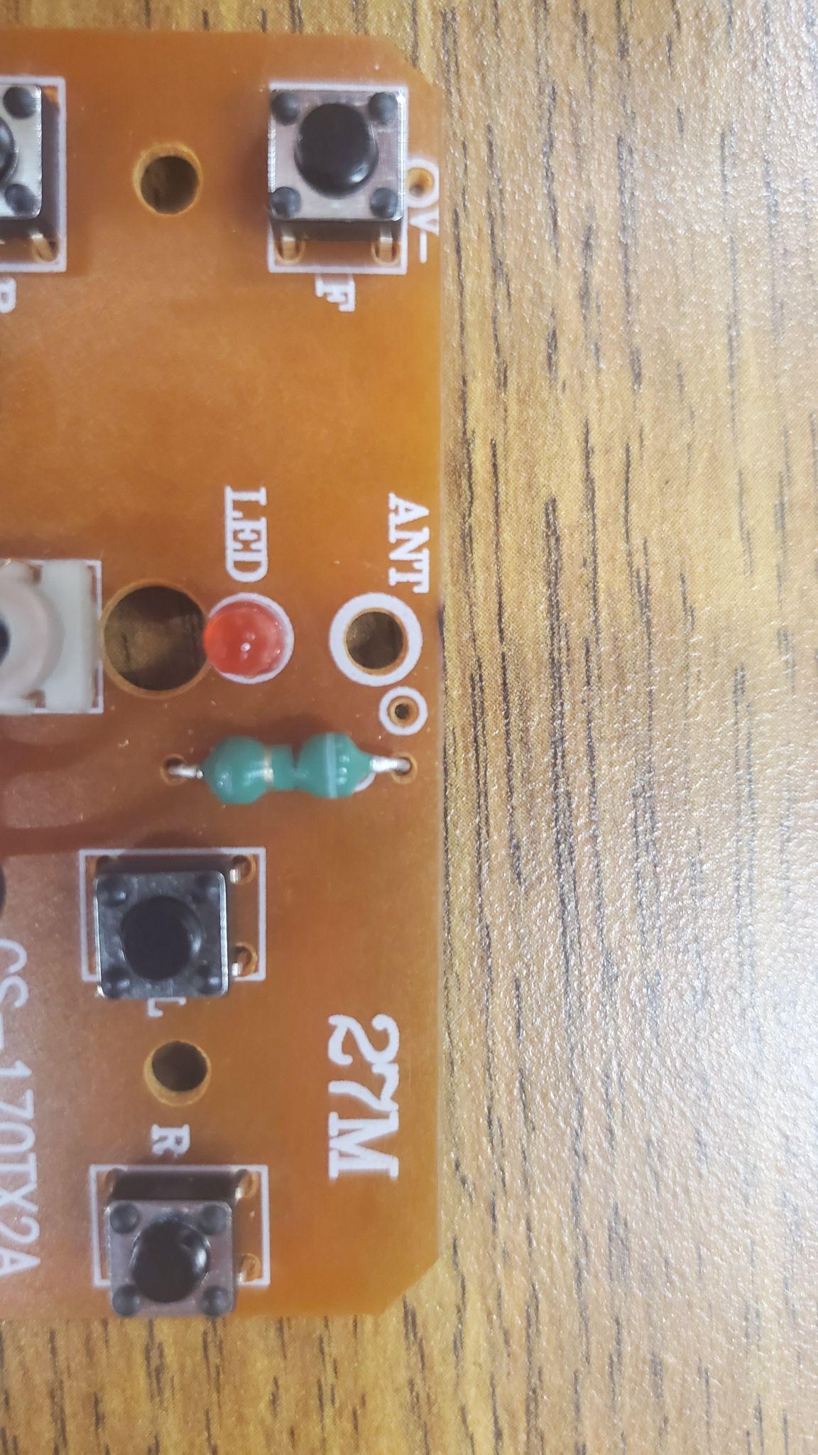 Solder the antenna wire in this hole. This should be the only soldering you will need to do. If you do not solder this it is likely not going to work. (Yes I tried attaching it to the resistor).